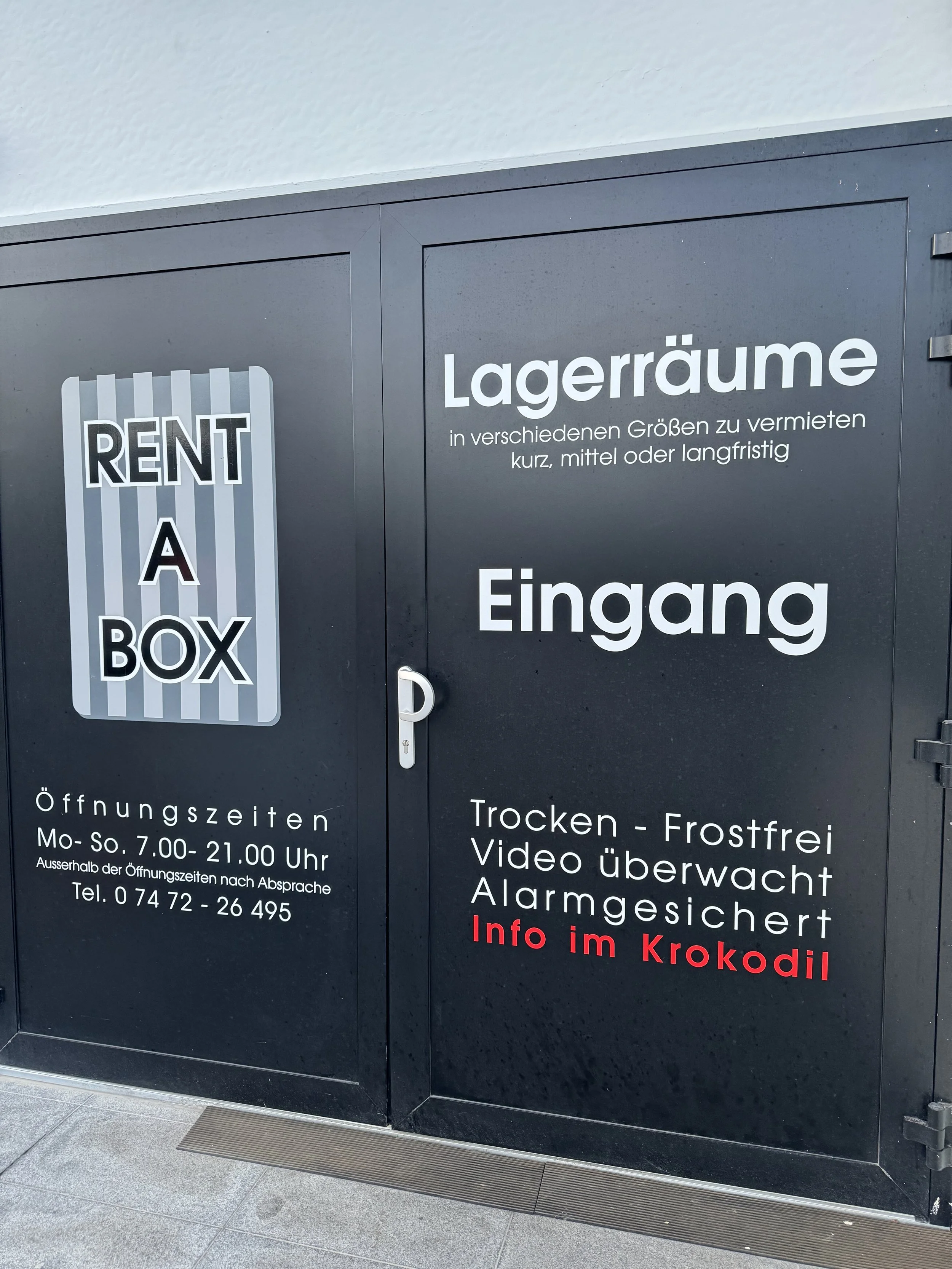 Wir betreiben ein großes Lagerhaus, in dem Privatpersonen und Gewerbetreibende Abteile (Boxen) mieten können. Ganz unkompliziert, so lange Sie wollen und gerne auch kurzfristig.
